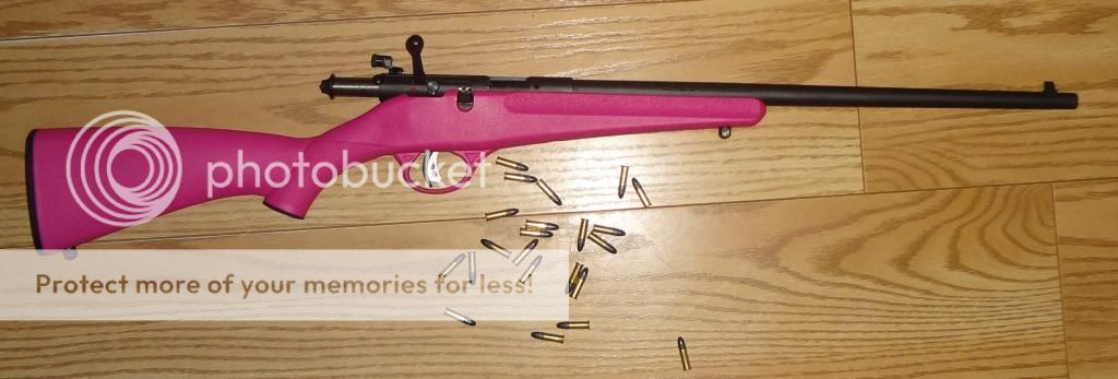 Hasnt stopped he and I from shooting it though. Its tiny, but very well built. The best thing is its not just a normal sized reciever with a small stock. Everything is scaled down. Its got a great peep sight, and a safety that leaves no question marks.