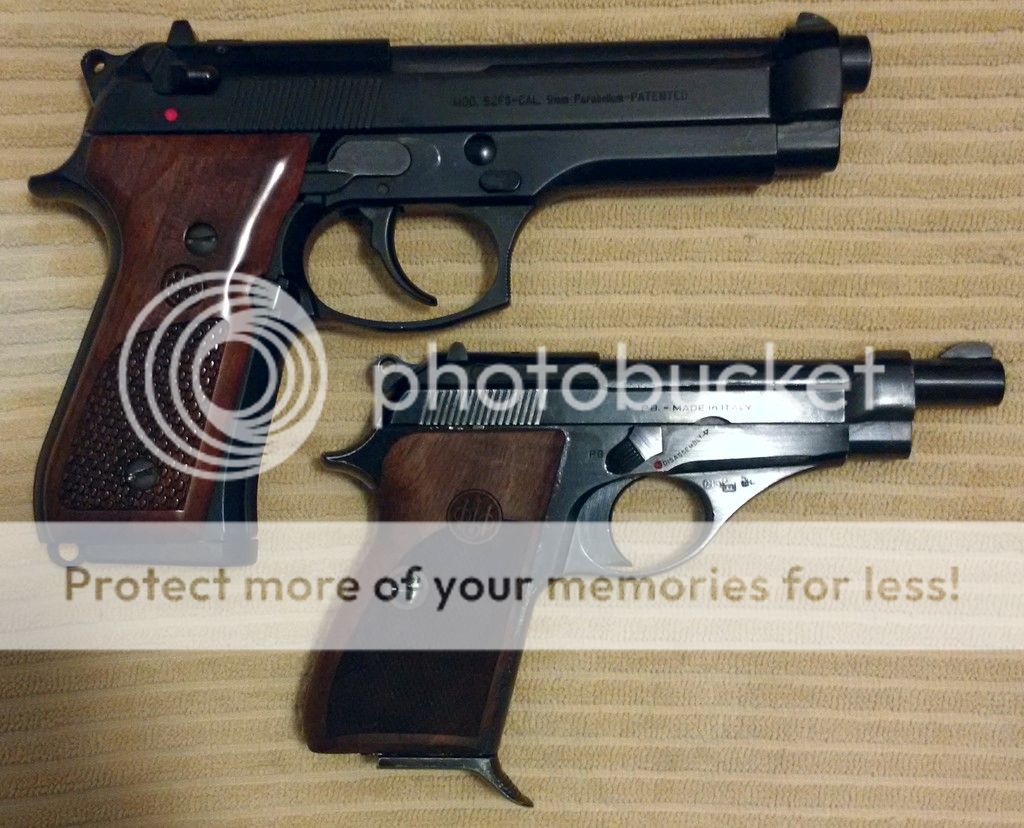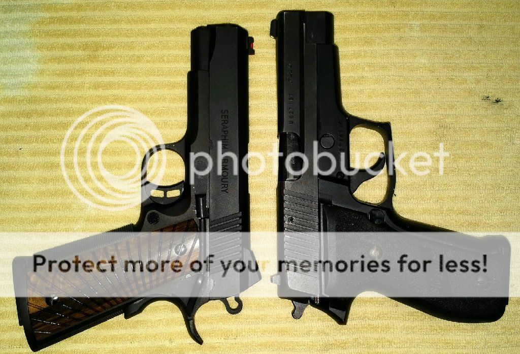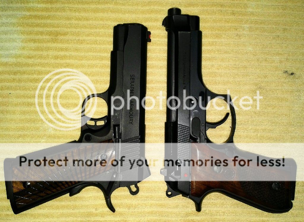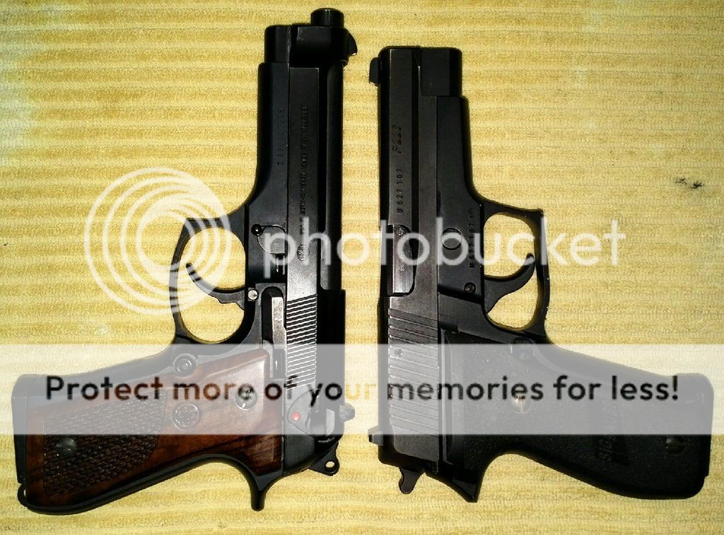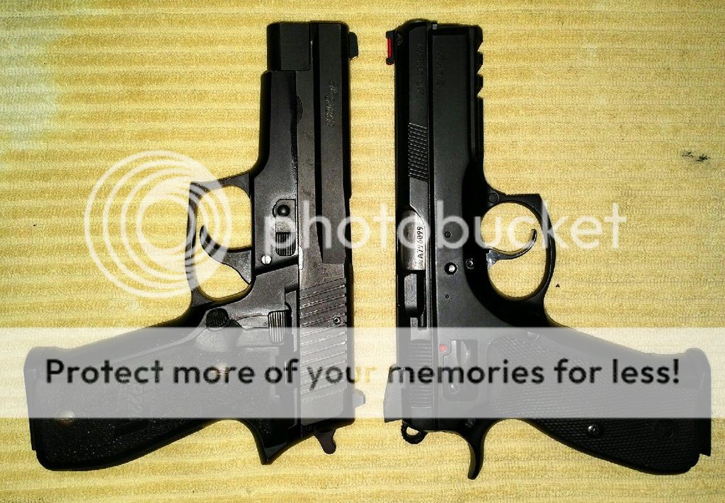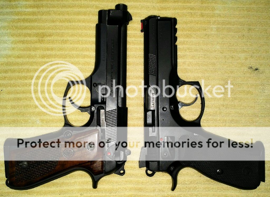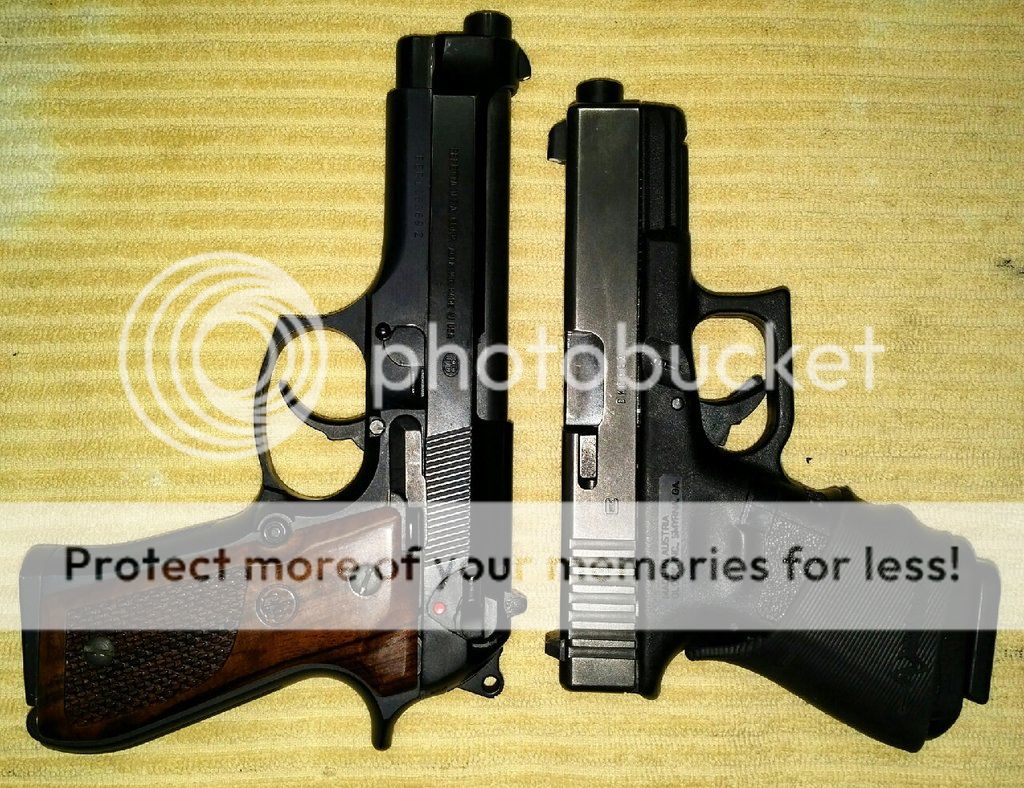 Hearing about a new (to me) gun and reading about it on the internet only goes so far, I find that I get a better impression if I can find a picture of the new gun next to a gun I'm already familiar with. So below you will find some pictures of various guns I have owned next to one another. Most of the pictures have the guns placed top-of-slide to top-of-slide, sort of mirroring one another. If I could only pick one comparative position, (which I did), in my experience this perspective has worked best for me but your mileage may vary.