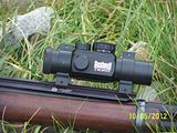 Here is a mock-up, the weaver rail is longer so I can attach it to the forearm. Ideally it would only be about an inch long centred in the rear dovetail. Very slick IMHO if I don't say so myself... Where can I get one? Anyone with a machine shop want to make one for me??? The last photo is a bit blurry because the exposure was so long... the TRS25 really is quite a good budget red dot.