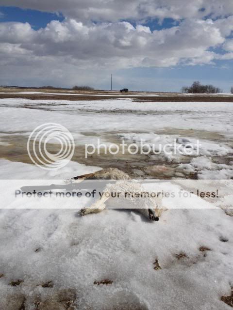 Today I went about 200kms in the opposite direction from where I was yesterday. At 11 am I thought I seen a crow in a field.... Nope, coyote just waking up, and stretching. 600yrds out with high wind. I had to pass as I had NO idea how much the bullets will drift.