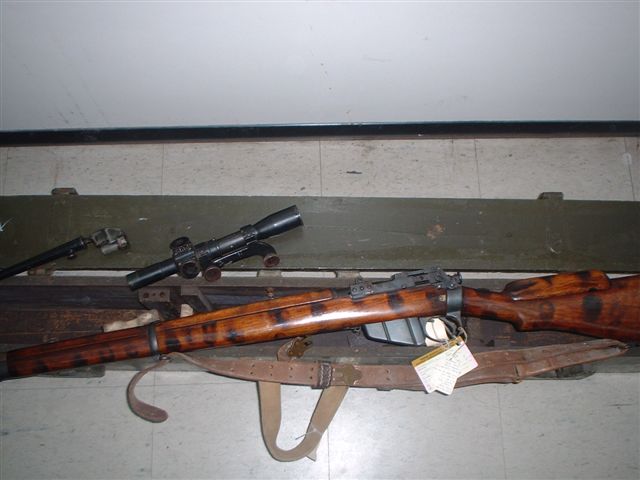 The scope was non-matching, and was damaged (ocular lens was free-floating inside the tube) but it was a Mk III scope, and so I would think it not to be the proper one for this rifle anyhow (an early trials rifle dated 1931 with a 1943/44 production scope? Unlikely I think.) I would have anticipated that the scope would have been a Mk I.