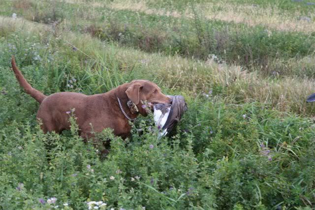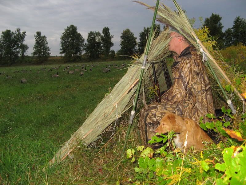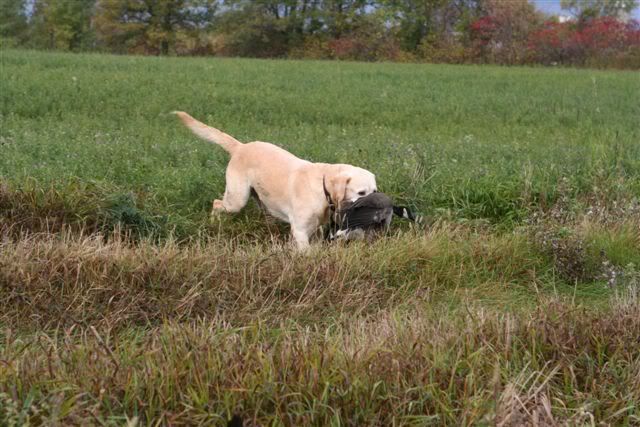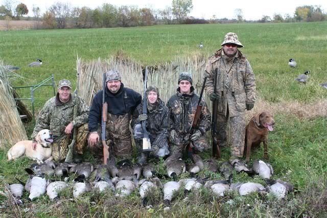 We hunted near Alexandria, Ont. this Wednesday. Hundreds of geese around, but 3 of the guns were out for the first time shooting. They also used 2s on 40 plus yard birds, to no effect! I used Federal Premium BBs and Tungsten BBs. I hit some way on the far side of the decoys. We had a number of wounded birds until I switched to 2nd and 3rd shot Tungsten. Scotch had a workout getting the wounded one, some in the next field.