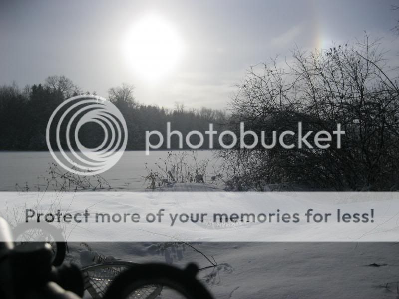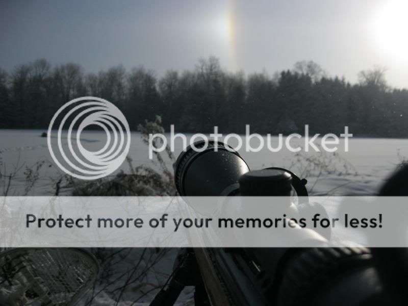 This morning was cold at -18 so I thought at 7:15 to get dressed and go for a set. Headed for a place down the road close to the Minising swamp and met the farmer at the road, had a short chat and off across the field. This is the spot that another guy was hunting Christmas day. I have my favorite spot and I work my way in on snowshoes to my spot. 6 inches of fresh snow that covered 60% of the ice noise so I felt good. I get there snip off some red gads that grew up over the summer in front of the tree I sit and settled back.