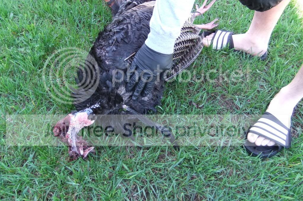 Actually jon gun, almost quite the opposite unfortunately. I hammered him at 35-40Y, he buckled over and hit the ground, I was sure he was done. Then he stood back up and started to fly away, I sent another, it wasn't the best shot as I was prone and shooting through a hole in a fence. I jumped up and over the fence and took off after him. I found him 150M away. The last shot was the "humane" one at about 2ft.