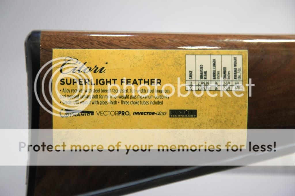 Similar in size and feel to the Cynergy, the superlight feather however is a tad bit lighter and has a grade II/III walnut wood stock I love this shotgun. It feels great and looks great. This one comes in either 12ga or 20ga