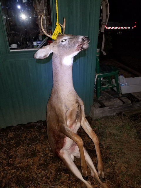 It took a while by flashlight and being my first time but i didnt do a horrible job and there was no major mishaps lol we cleaned up and put the deer away in the shed to go to the butchers the following day.
