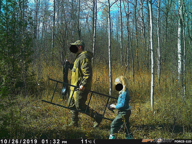 So heading back i decided for the afternoon sit ill try the new ladder stand overlooking the plot and the neighbouring field. My dad and my daughter and I had moved the stand from a different location with plans on making it better for crossbow hunting since the other ladder stands are in such thick brush an arrow would never work!