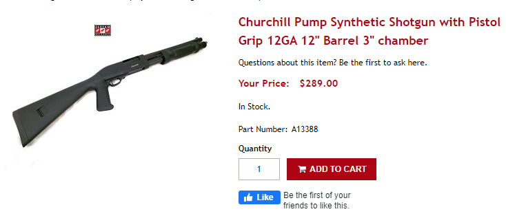 Draw 2: Churchill Pump Synthetic Shotgun with Pistol Grip 12GA 12" Barrel 3" chamber