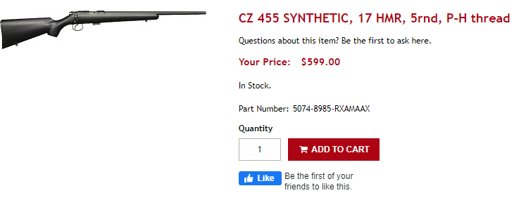 Draw 1: CZ 455 SYNTHETIC, 17 HMR, 5rnd, P-H thread