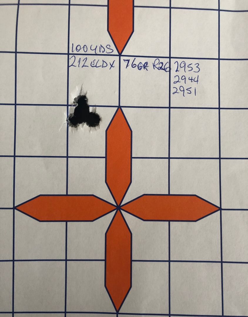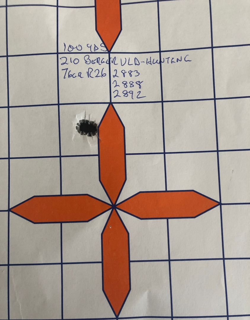 I tried the factory 225gr ELDM again and it shot pretty good and then on to my handholds with Reloader 26, so far so good