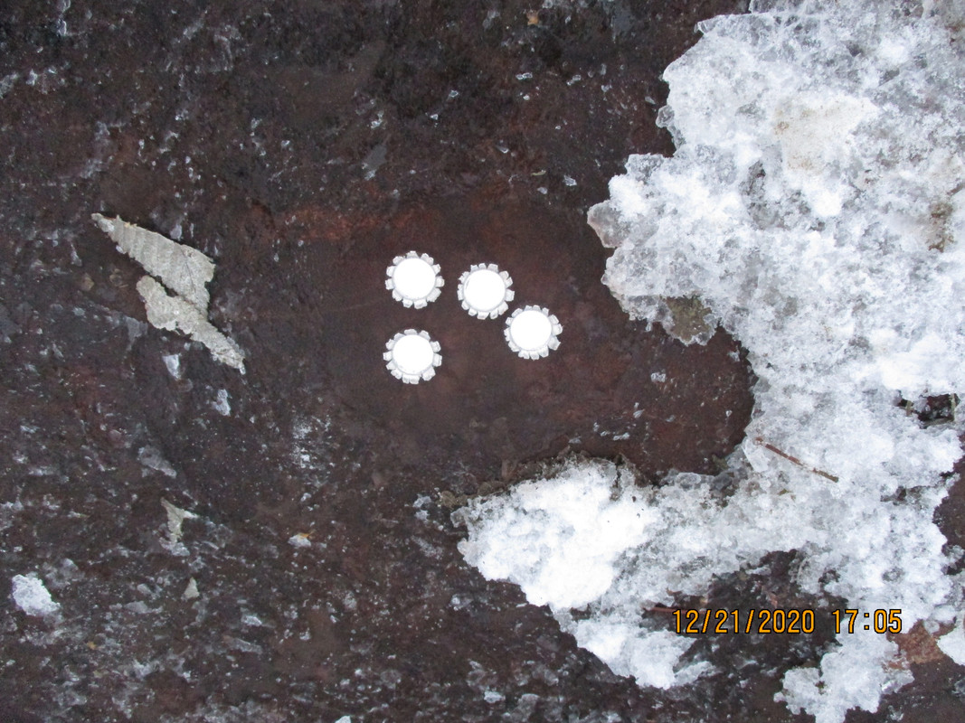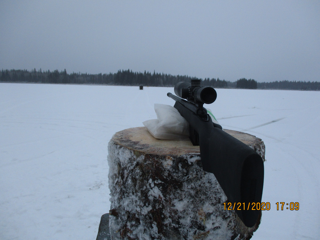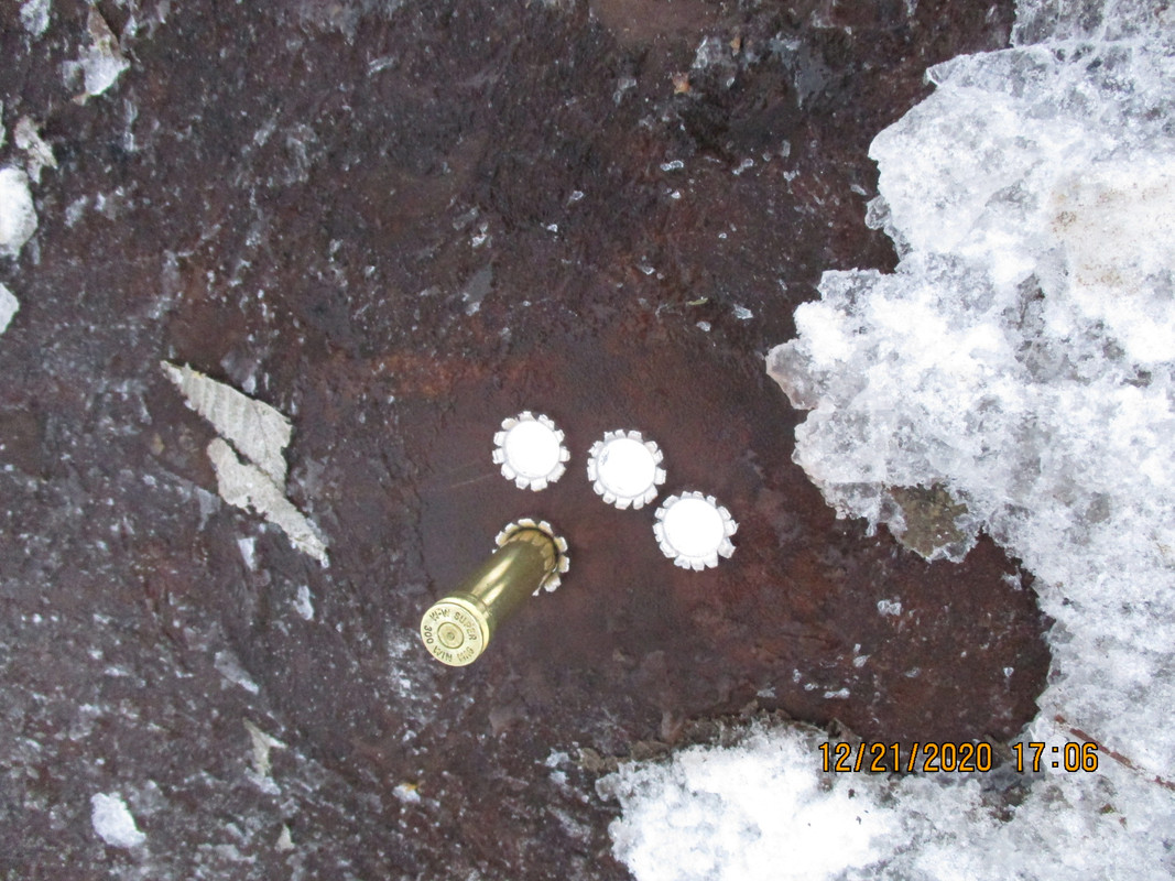 The findings in the snow on the way back to the bench after the 338 spoke. 25 feet from the target.