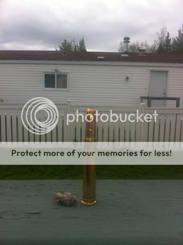I went out hunting last night for my spring meat bear and much to my suprise I came across one that was hobbling and while further glassing I noticed it was only walking on 3 legs so I did the ethical thing and harvested it. Apon skinning the animal I was surprised to find my bullet just under the skin I was using my 375 H&H with 300gr federal blue box ammo when I took the shot. I was only about 150 meters away from it I wouldve thought it would"ve gone right through and kept trucking on. It was'nt a huge bear by any means but it did hit its back bone and then went through its ribs. I don't know if I should use them on moose now or load some up with a better bullet. whats your opinon? (oh and as for the bear and it's foot it looked as if someone shot it in the pad and broke its foot)