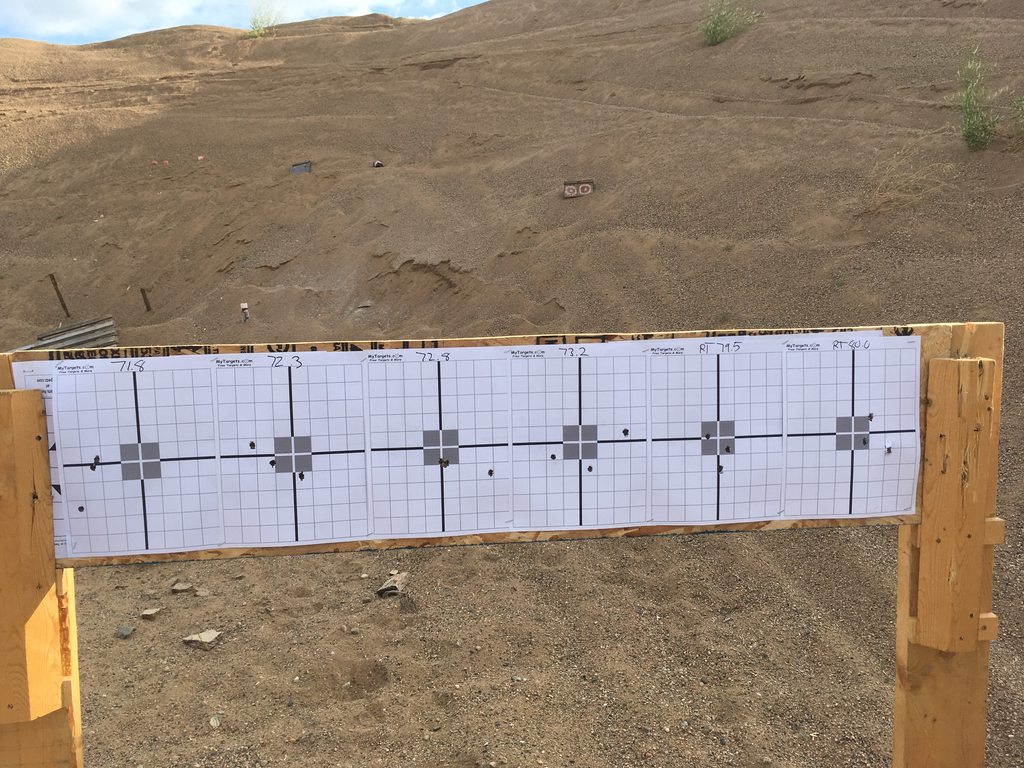 The first 4 groups are IMR7828.Adjusted the scope after the first load of 71.8 to stay in the center of the paper, so there is no confusion as to where the big movement came from.