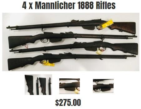 4 Pack Mannlicher 1888 Rifles $68.75 Per Rifle