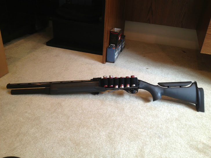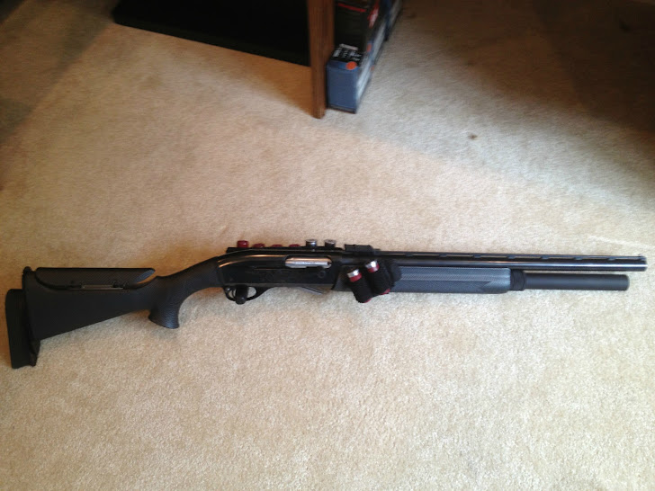 And for the tactical/IPSC style built besides finishing the stock, all I need is a mini red dot (I think a burris fast fire 3 for Christmas). It has 20.5" barrel (removable chokes to be added), shell carriers, a 3 round extension (plugged/pinned at 5) and heavy duty cocking handle.