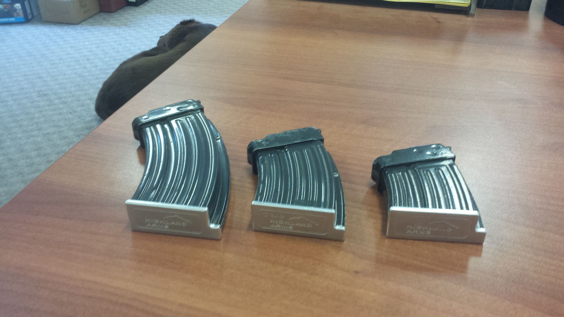 Up for grabs, three mags that we had done up by Highland Arms back in the day, $20.00 a pop, shoot us an E-mail or give us a call.