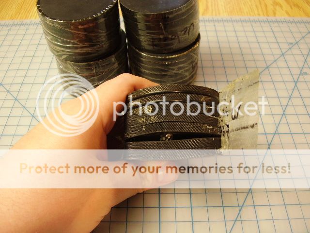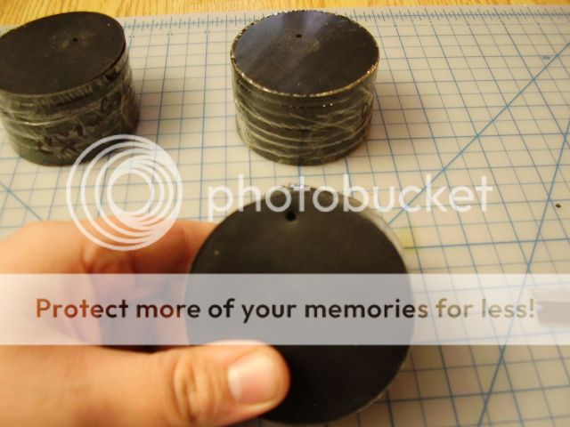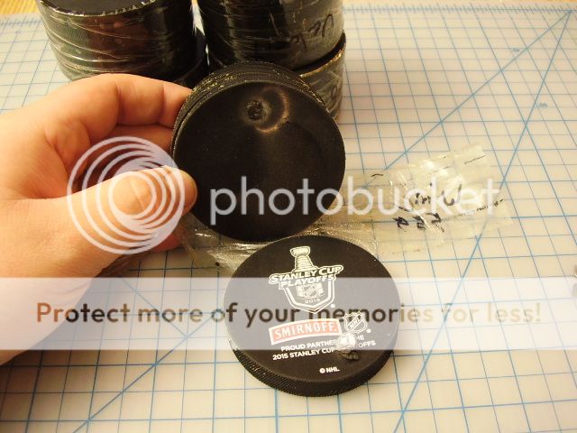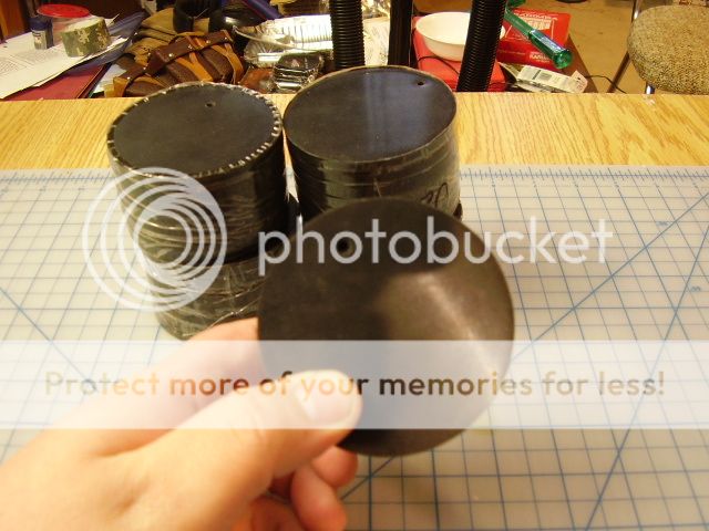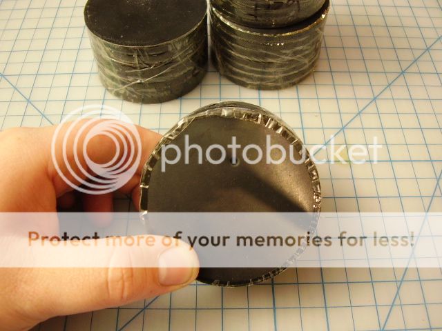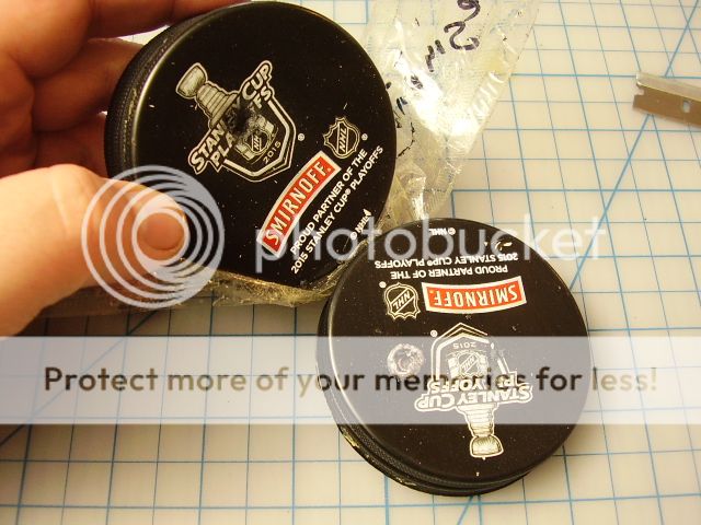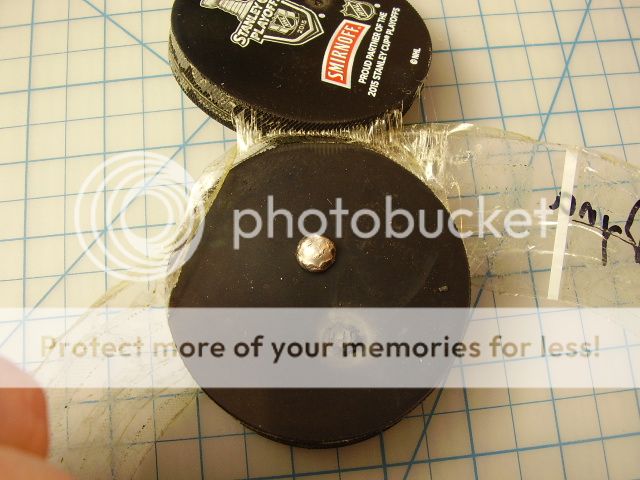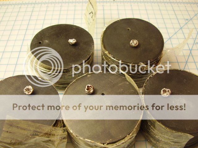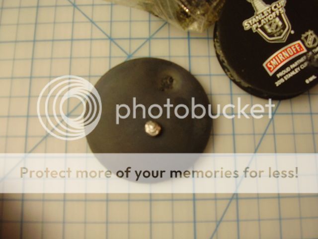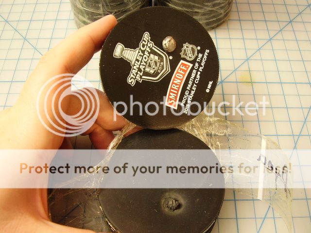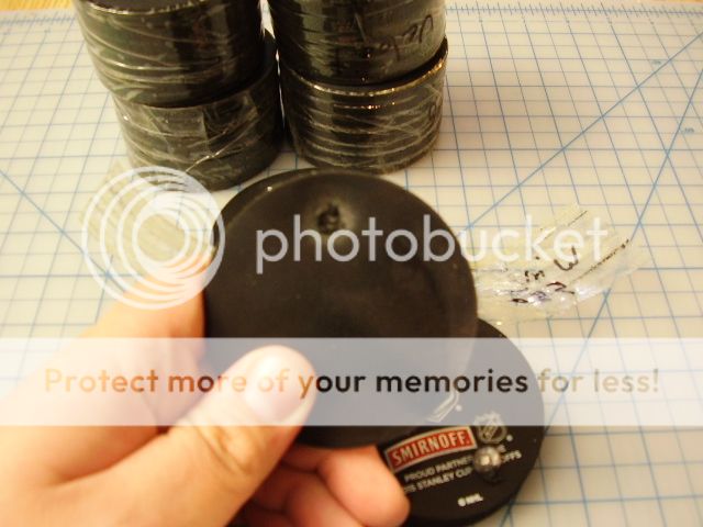 Boss had a box full of these stupid little Stanley Cup coasters hanging around for too long and told me to get rid of them. They are basically what you get if you saw a hockey puck into three slices, and since I am always on the lookout for fresh targets for plinking, I tapped seven of them together and found them to be quite tough reaction targets for the .22. It got me thinking about trying penetration tests with what ammo I had to hand.