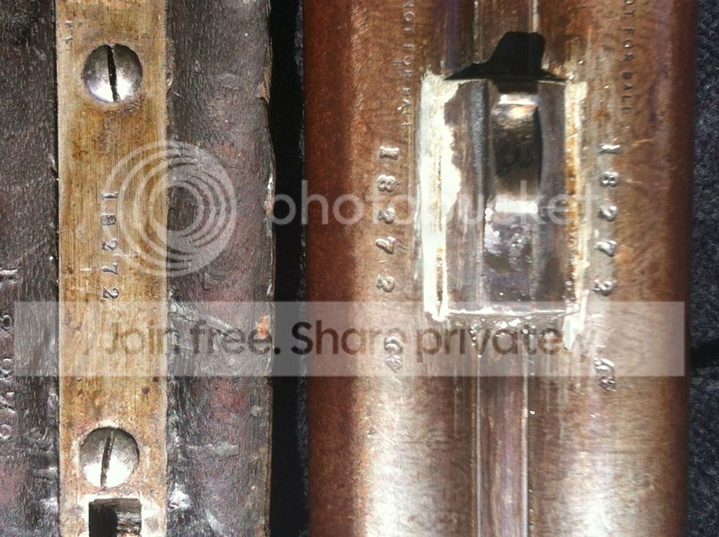 First is an old English side lock WW. Greener 10 gauge double barrel. It has a damascus barrel that is brown from rust. The action is tight.The bore is dark. I haven't cleaned it and won't dare fire it.