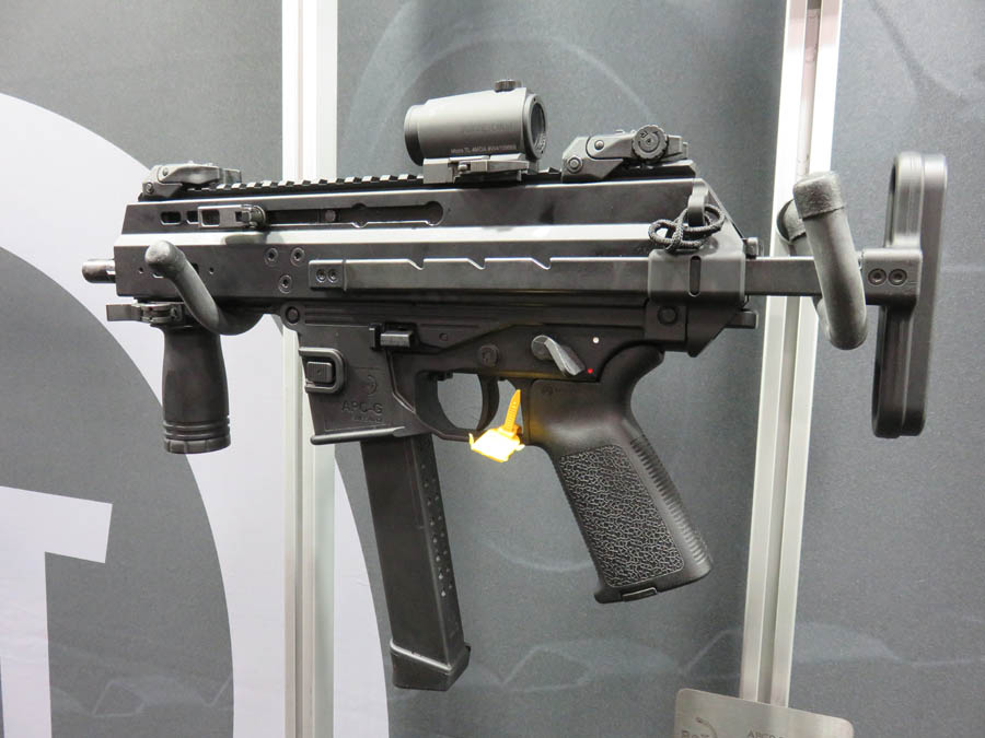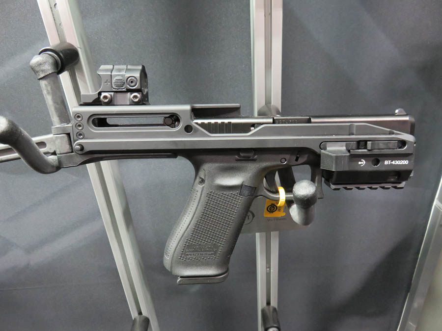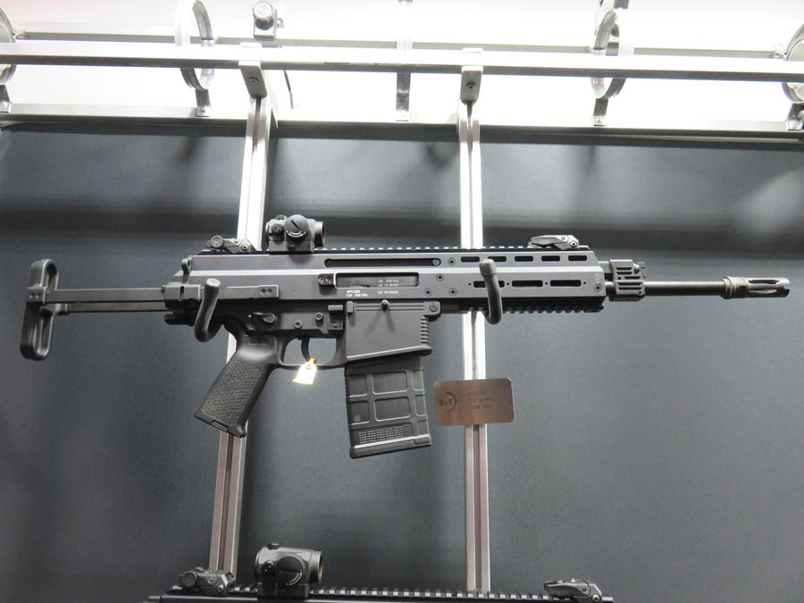 APC 308 is also displayed along with a parade of the already well known APC 223, and they are now M-lokerized. The interesting one is the 18" DMR version with an adjustable stock spotted with a cheek piece. This is the missing place that makes APC work with optic. Somehow B&T doesn't realize in the beginning all the rail space on the handguard is not useful for LAD or switches if they have to mount optic so low such that their low cheek height folding stock can work properly for normal human beings. The BUIS they put on show guns are definitely not even close to being co-witnessable. Perhaps they need to redesign the stock so that it folds left like the SIG MCX so the cheek height can be made much higher.