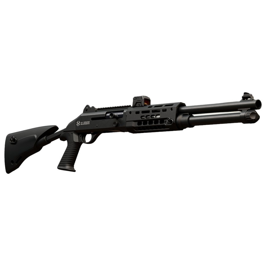 The M4 A.I. Drone Guardian 18,5″ combat-proven shotgun offers unmatched reliability in all terrains and weather conditions. Its primary purpose is to serve as a “last resort” weapon against small quadcopter FPV drones on the battlefield or to quickly neutralize spy drones. It can be deployed by a squad or firing team, and functions as a personal defense weapon (PDW) for individual operators in real combat situations. With the M4 A.I. Drone Guardian, we can achieve this objective.