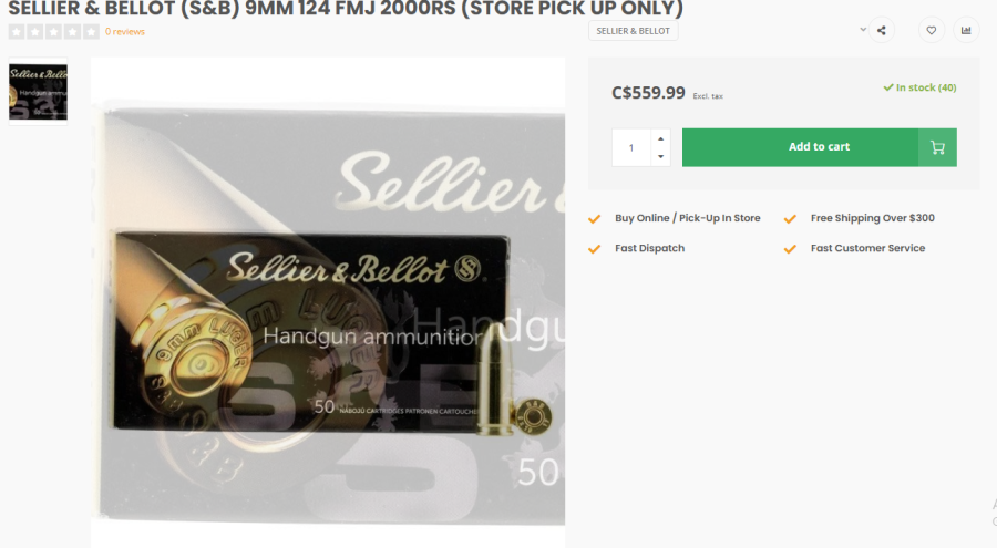 Great Deal!!!SELLIER & BELLOT (S&B) 9MM 124 FMJ 2000RS NOW C$559.99! (STORE PICK UP ONLY)