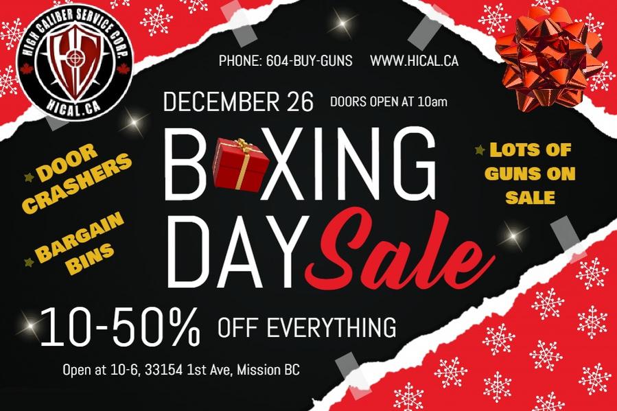 Dont forget about our boxing day sale today! 10% off all firearms, Firearm blowouts, 15%-50% off all accessories, door crashers....10-6 today, 33154 1st ave, mission.