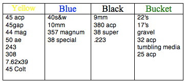 The Sorter simply sits on top of a common 5 gallon bucket, with a few shakes your brass is sorted by caliber. The Shell Sorter™ is comprised of three pans designed to sort several common calibers. These save a LOT of time sorting brass by hand.