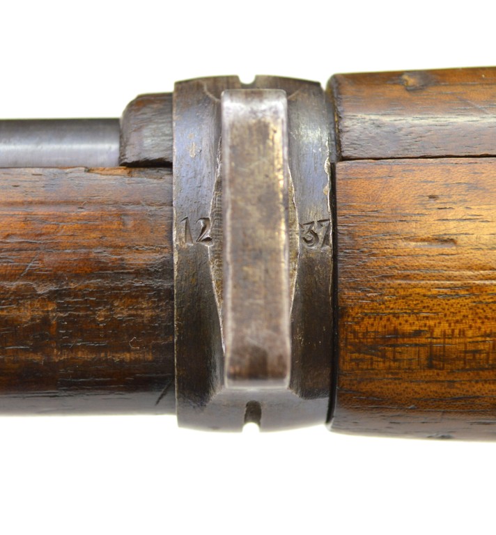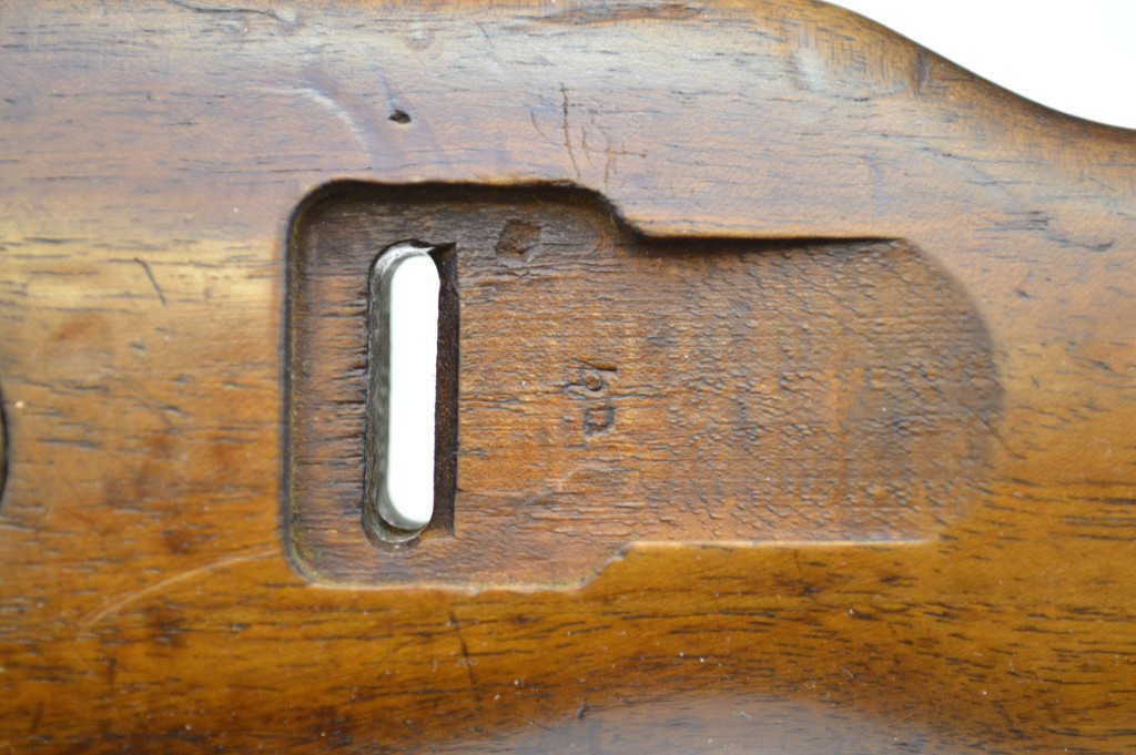 Not the greatest condition but an honest all matching combat carried piece. It's duffle cut under the front band of all places so almost certainly a vet bring back. The floor plate and side of the ejector box have the finish worn off from being carried most likely and the wood around the wrist is pretty dark. The rest of the finish is thinning and the wood has it's fair share of dings and dents.