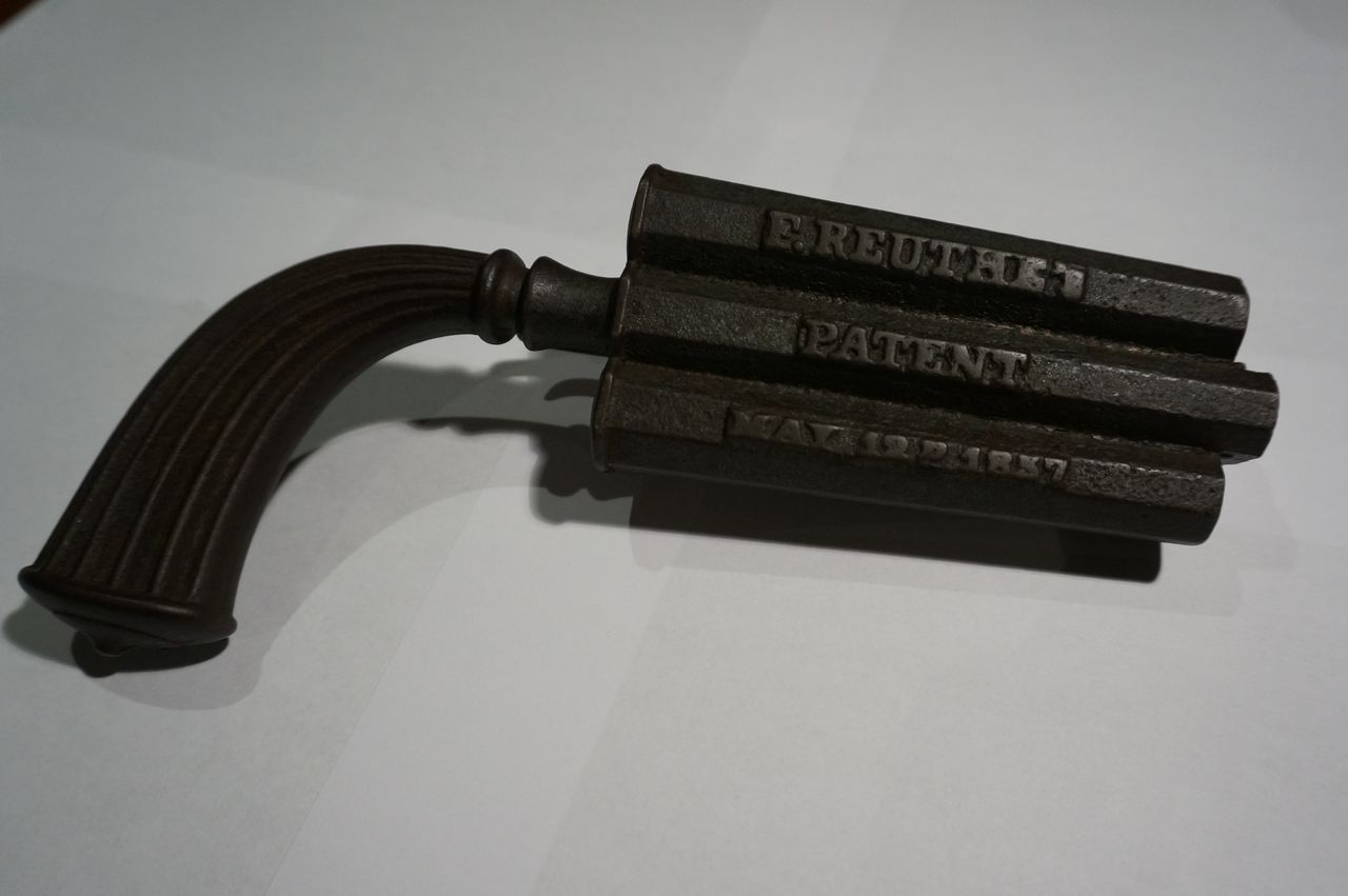 1. Pistol (what is the correct name of such type of pistols?). Seems to be in working condition. Serialized. F.Reuthe's Patent 1857.