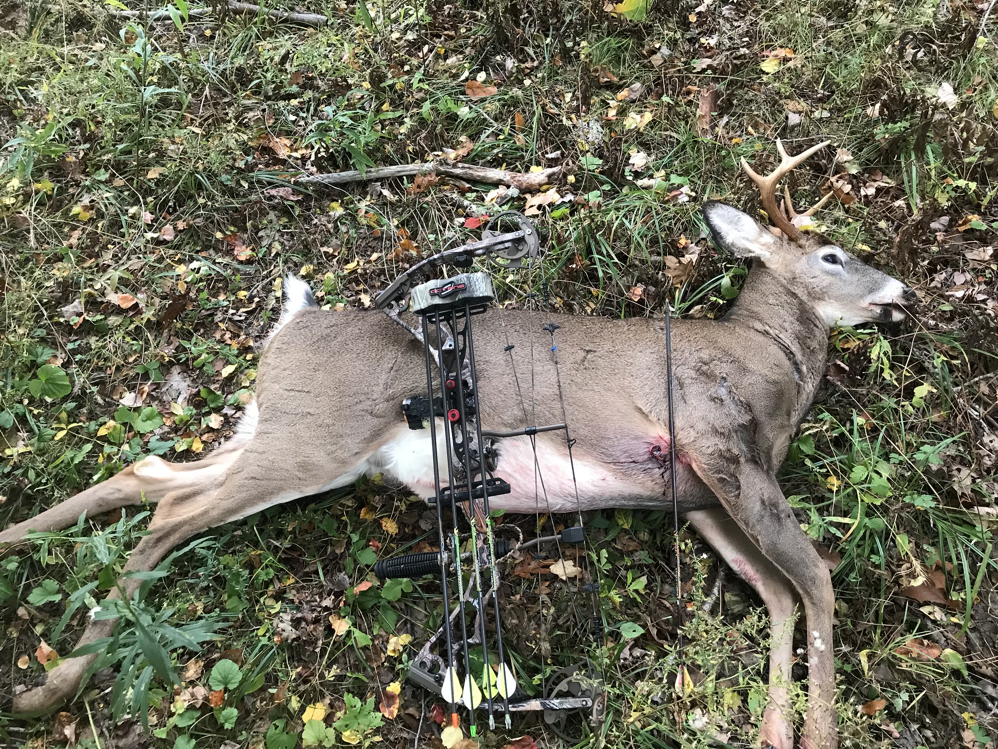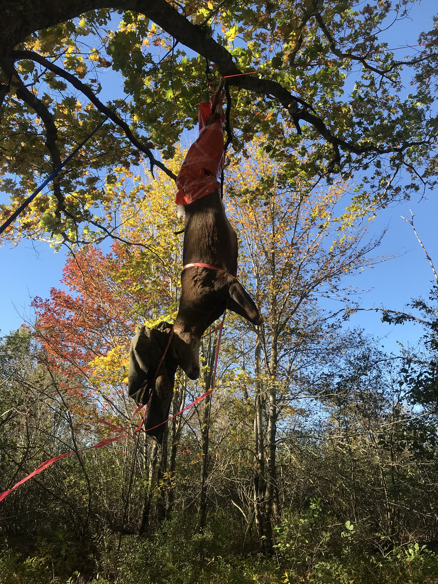 Relief, disbelief, happiness, gratefulness that things came together and that it all went right. A quick and awkward “selfie” trying to balance my phone on my backpack. Not happy with the pic, but the guts need to come out of this thing and I need to get him safely strung up and away from bears/raccoons and coyotes for the night.