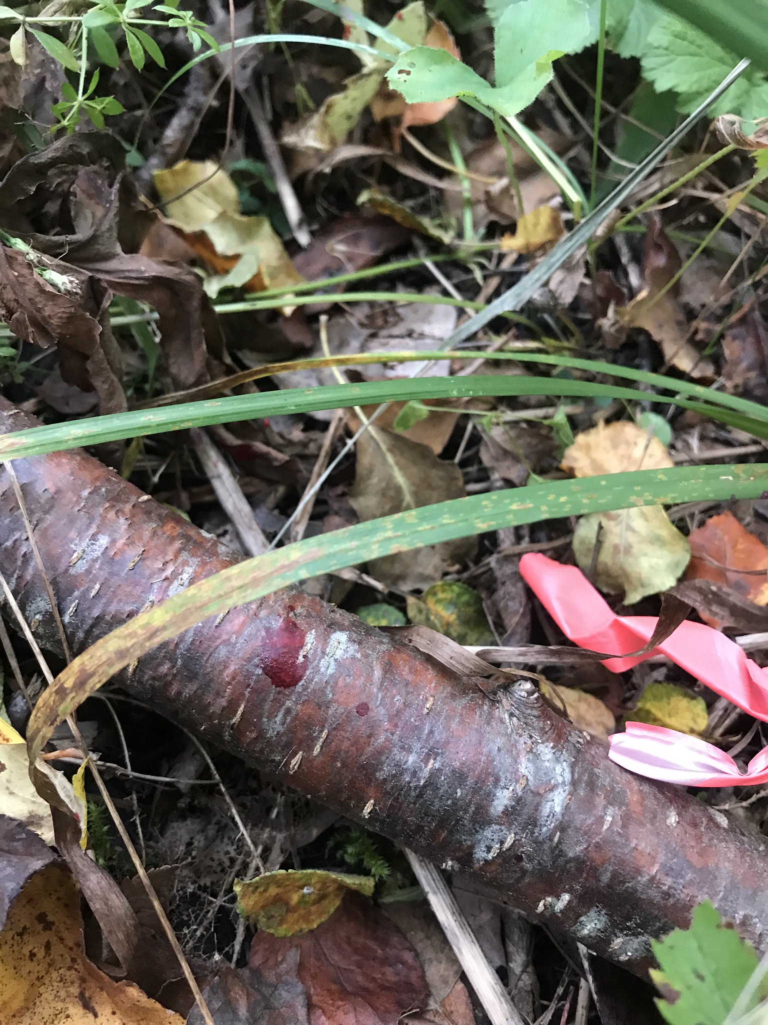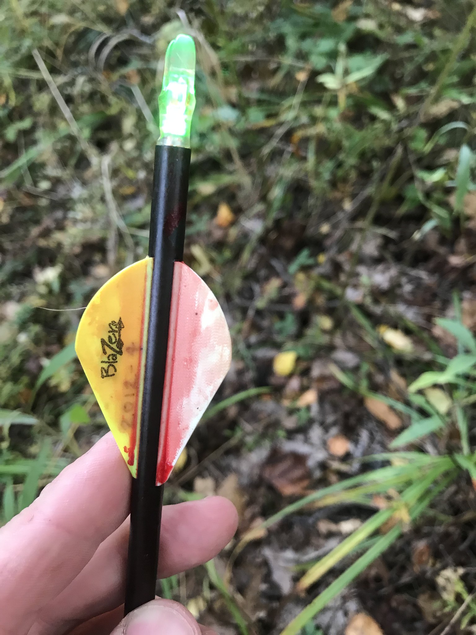 Got out my flagging tape and started looking for blood. First drop a yard away. Not much compared to what I’m used to with the mechanicals. This is my first fixed broadhead shot. Will it be OK?