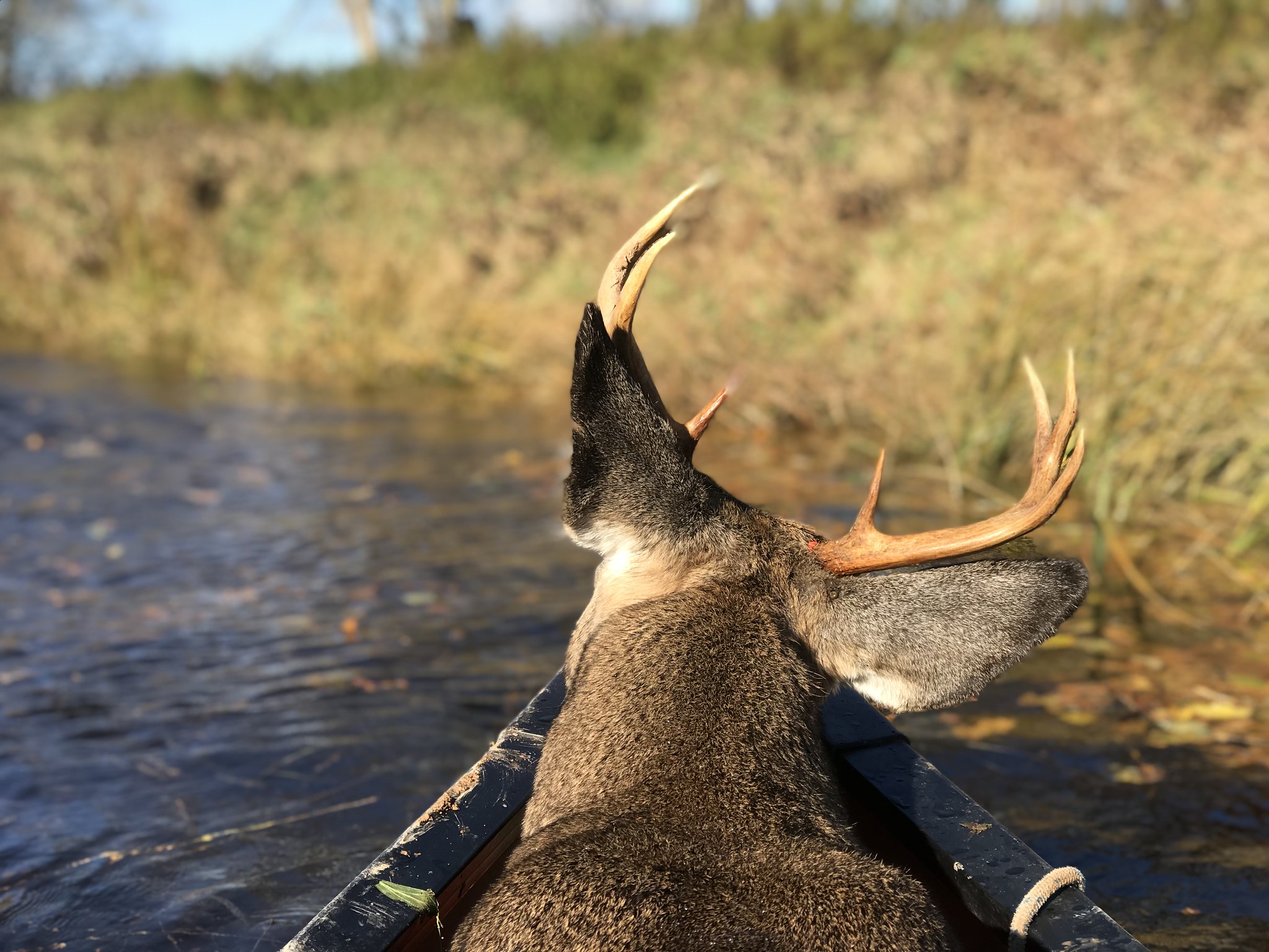 Well...it finally happened (spoiler alert!). I got to channel my inner Davey Crockett and paddle my canoe down the river with an archery buck draped over the bow.