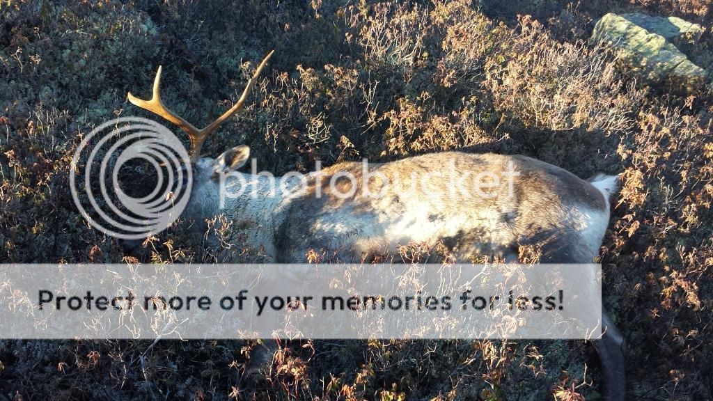 The essentials were gathered and we headed over to collect my first caribou stag. To say I was happy is a bit of an understatement. When I got to him I could see why he reared, he was hit low and the bullet passed through. Looking back across to where I had just walked from it seems that the 200 hundred yards I initially thought was more like 275 yards, could be wrong on the distance, hence the low hit.