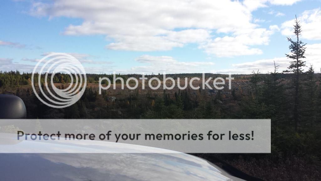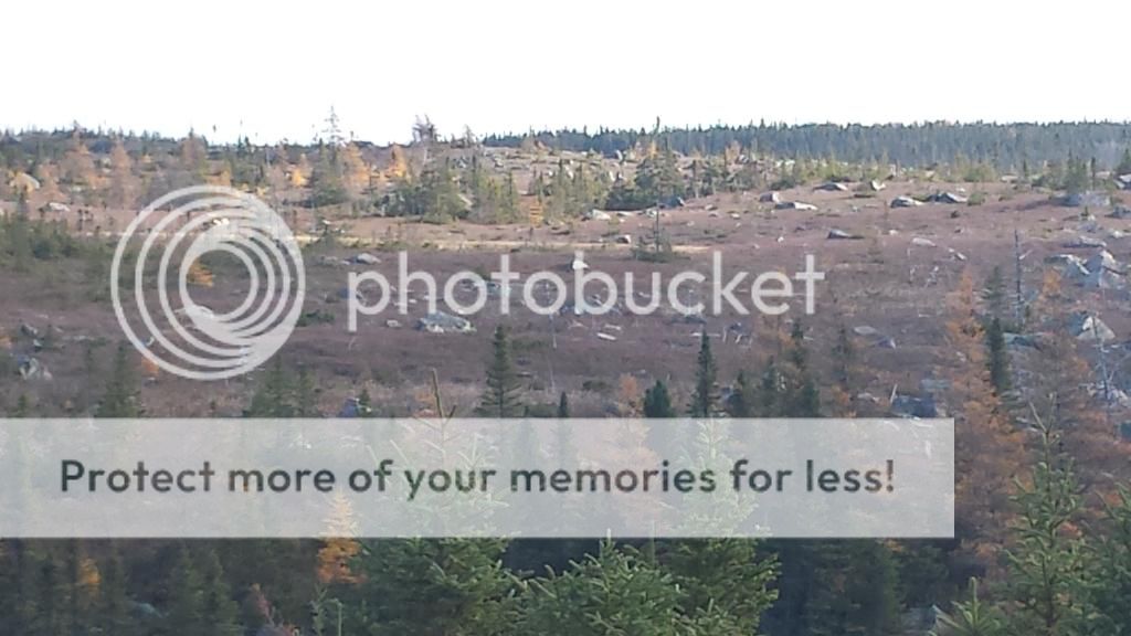 I had heard someone mention seeing caribou in an area that I had never been to before while I was in the local hunting store on Thursday so I decided to check it out. Friday morning was the first decent day in awhile, no wind or rain and honey do list on hold, so I headed out with my father-in-law. We were looking for some open spots or cutovers to glass and hike but it turns out it is thickly timbered country. Off to one side I could see some small open barrens between the timber and thought that they looked to be potential places even though they were not ideal wide open landscape. After driving a little farther there was a trail leading through a small open treeless area so we drove down to see what was there.