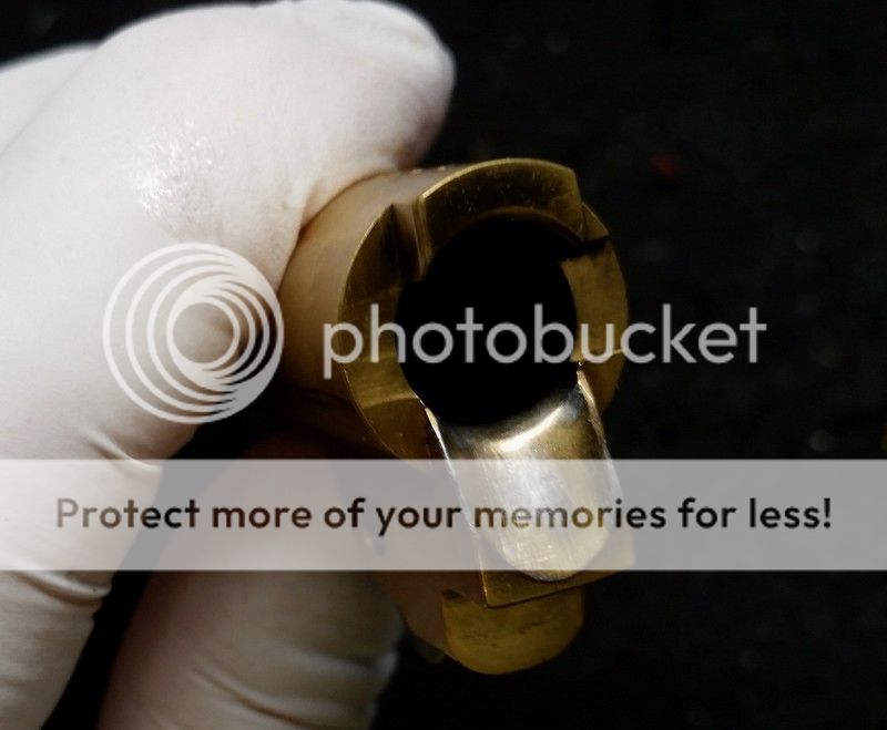 350 rounds (copper FMJ rounds) in one of the bull barrels and you can see that the TiN coating has worn off the feed ramp.