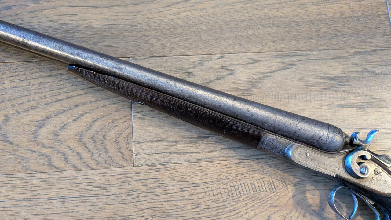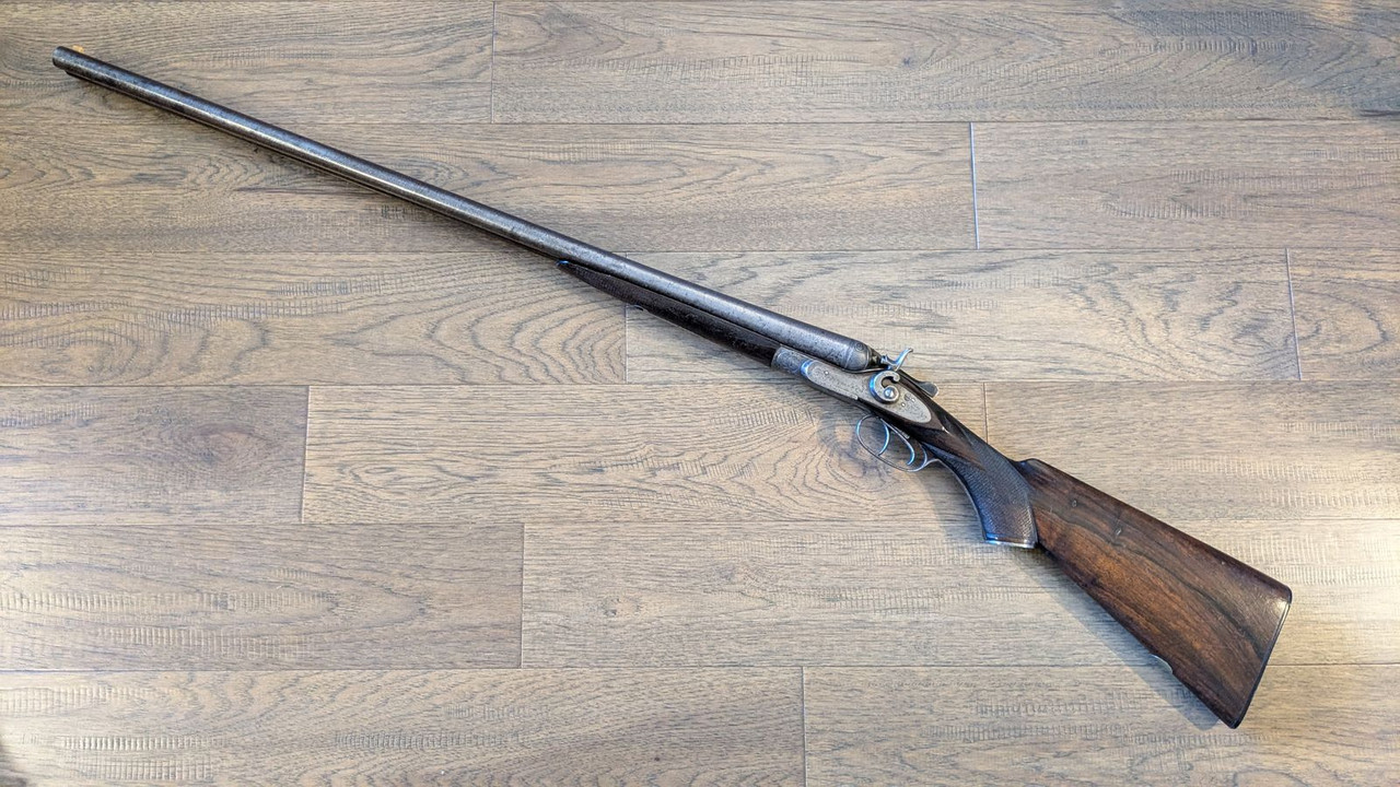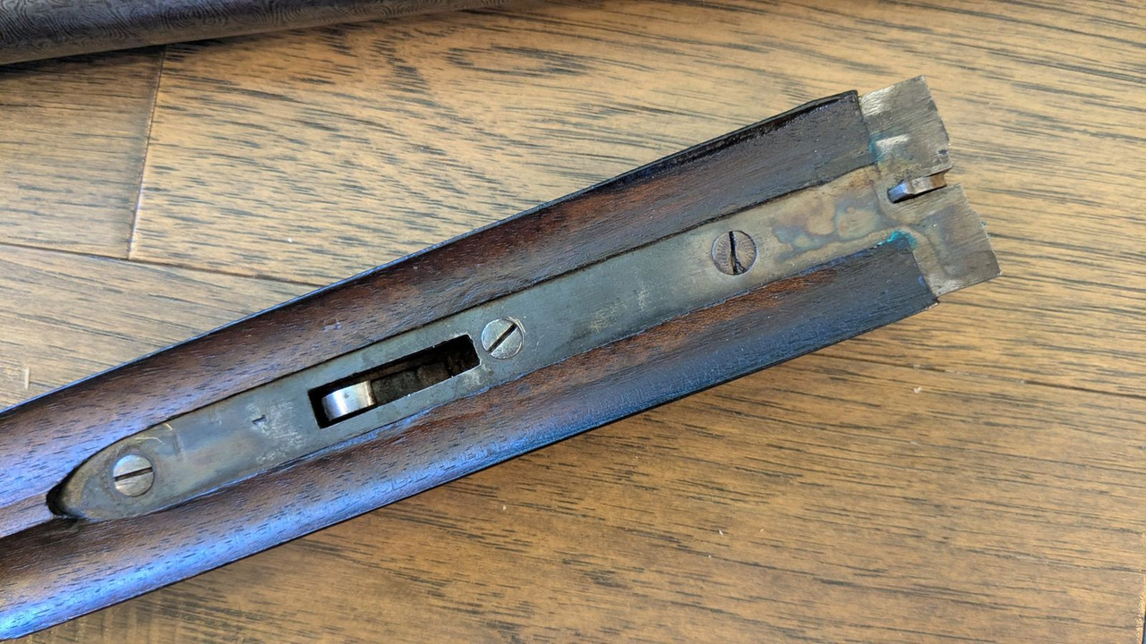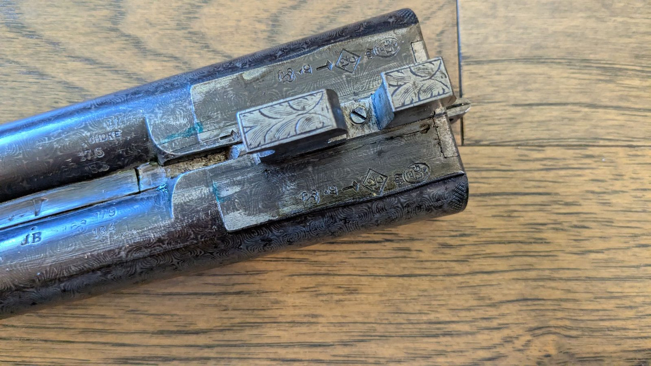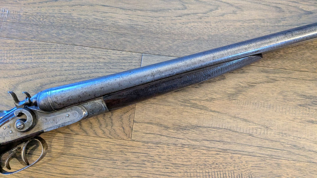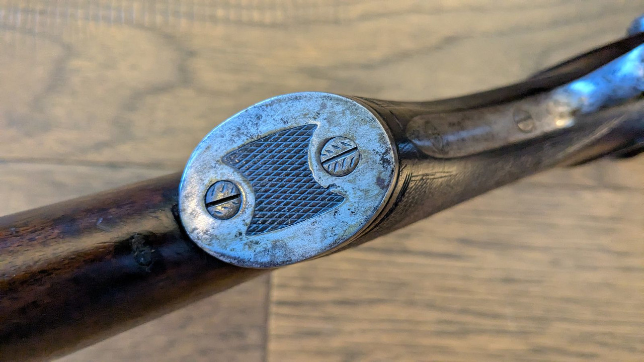 Shotgun itself turned out to be Belgian made 12ga, Damascus barrels. Matching numbers on flats and barrel, no serial on forend. Shotgun markings don't allow me to date it. However Chass Stark started having financial troubles in 1892, died in 1899 and business closed in 1905, so I assume it is post 1887 (absent in 1887 catalogue) and pre-1892.