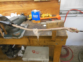 Now I personally like the Bore Snake for keeping the chamber and barrel clean on my hunts. If hunting in particularly bad weather I will generally pull the Snake through the bore before I start the day and after I return at dark no matter how tired I am. Like my knife, it's part of my field gear and I have yet to have one jam in the bore. Was the kink in the cord the contributing factor? was it the correct caliber Snake used to begin with ? While waiting for the rifle to arrive I began to experiment with different solvents that might aid in breaking down the nylon fibers on a spare Snake I had in the shop. Of the 5 liquids I tried only Lacquer Thinner seemed to make the nylon fibers at least more supple and slippery. The Net didn't offer up any incite worth bookmarking. This was going to be interesting to say the least.