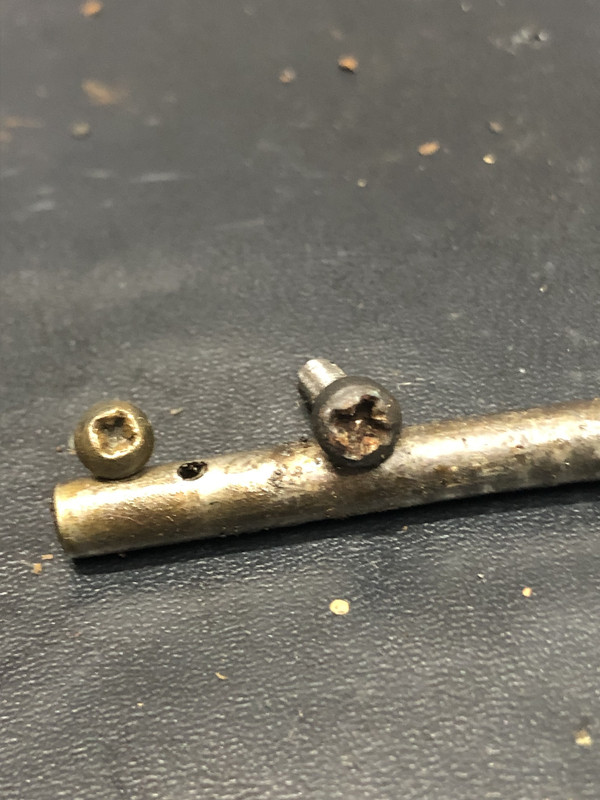 Well I’ve got it all apart right now and have some parts soaking. All though could someone confirm if the pic here looks right then or is this piece bent from abuse ? Also these two screws have seen better days. So glad I got them out out lol, where can I get a replacement for them ? The smaller one is the trigger guard. The other is for the firing pin it goes in the side of the action/case