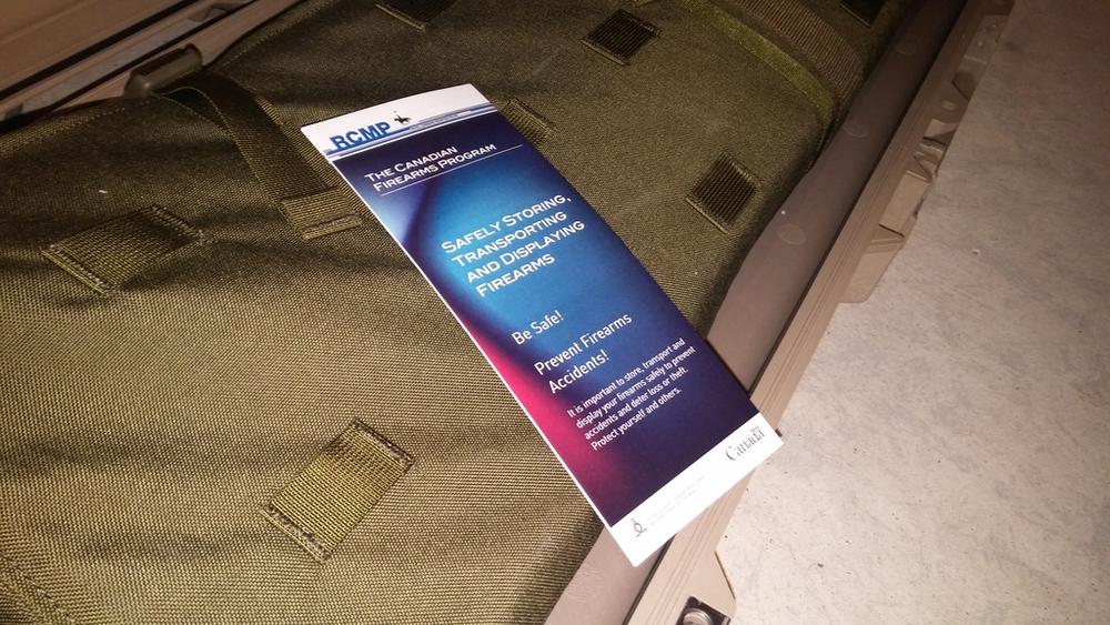 AND the next time you visit your local gun shop, snag a few of these RCMP handout/brochures for your hard case/restricted transport....