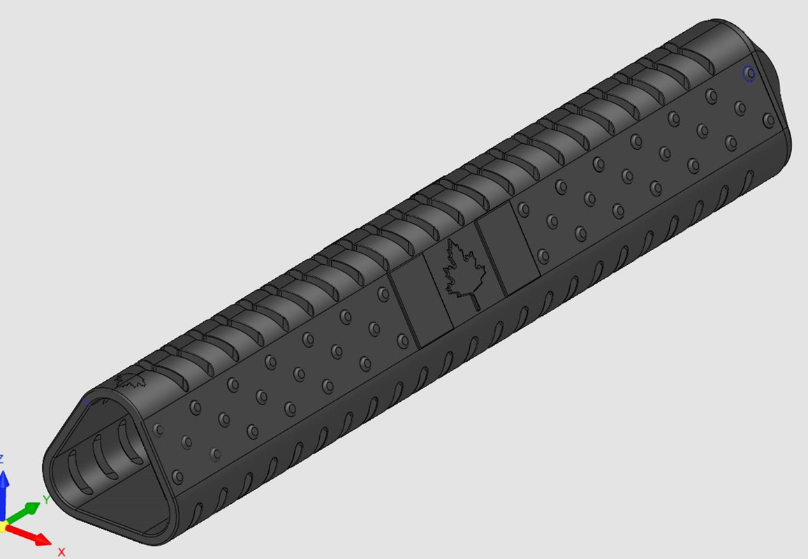 Just thought I would share my latest project. Im putting together a "Target Style" 6.5 Grendel. Ordered a nice 24" pipe and 6" muzzle device so I wanted a nice long and beefy handguard to go along with it. Couldn't really find anything I like so I designed my own and it it currently being machined. We got some work in the shop so it might have to go on hold for a bit but its getting there. The bottom is done, next it will go to the five axis for finish machining.