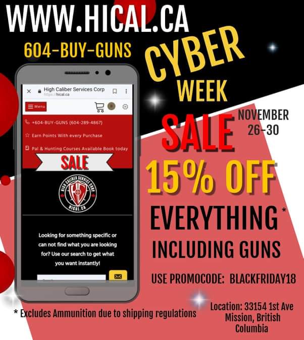 We are having our online sale this week. Cyber week sale, 15% off everything including guns!