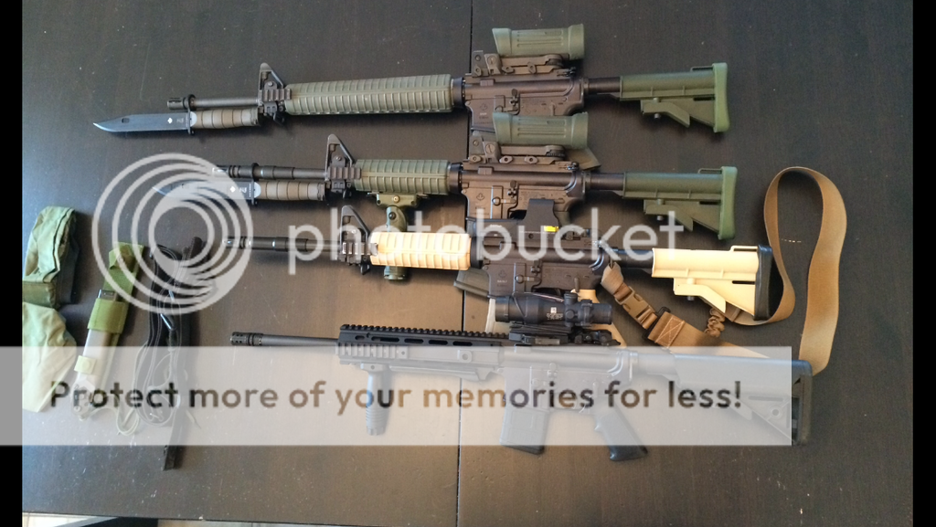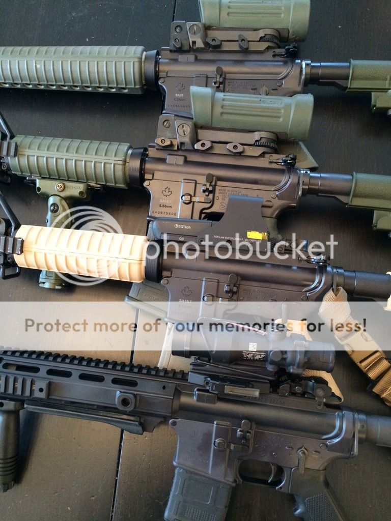 Had another addition to the stable, JTF & issued slings, couple eickhorn bayos, elcan covers and a blister pack of tan furniturethought I'd snap a few of the whole family again. I'm thinking about ditching acog rco in favour of a spectre DR 1-4 and a aimpoint to have the patrol carbine look.