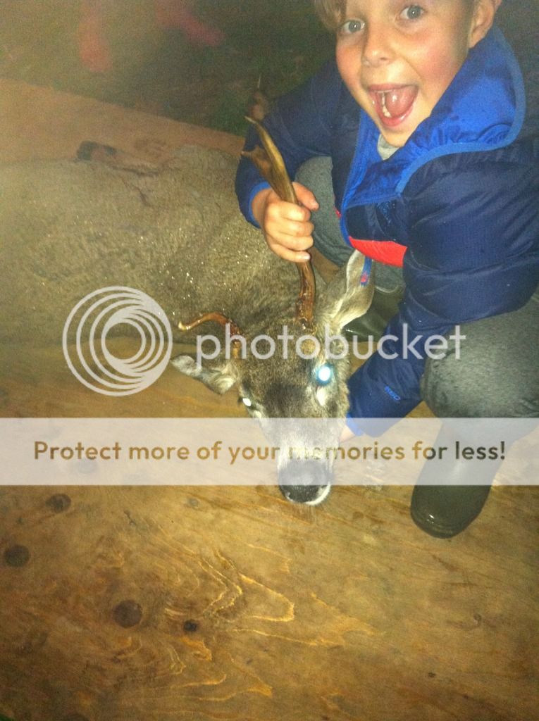 This character and a larger 3x2 and 2x2 have been hanging around....have been telling my son to let me know quietly if they show up. First tag cut this year. Small I know but this the island and will hopefully take the others in the near future. Funky was "ruttish" not really stinking but had some taint. The kids did the honors on holding the hooves