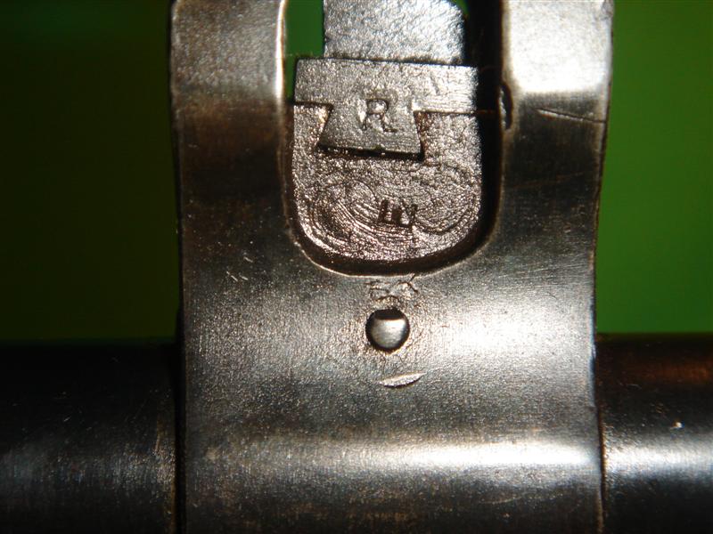 Note the "E" alone on the sling swivel and the "E" and "R" marks mixed together on some other parts. In the one pic below, you'll see that my Eddystone has a properly marked Eddystone front sight, but it's literally sitting on a Remington sight base.