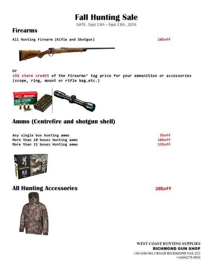 westcoasthunting Regular Business Member Rating - 80% 4 1 0 Location Richmond,BC Jan 11, 2019 #1 The SALE list of this week is below: Come and check it out! Attachments fall hunting sell-page0001.jpg 48.7 KB · Views: 437 Last edited: Sep 13, 2019