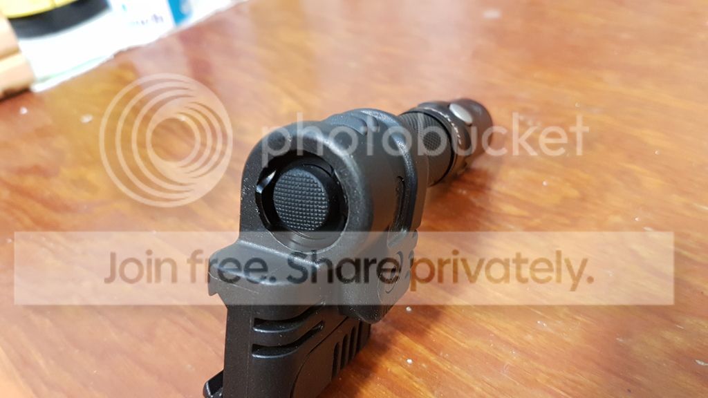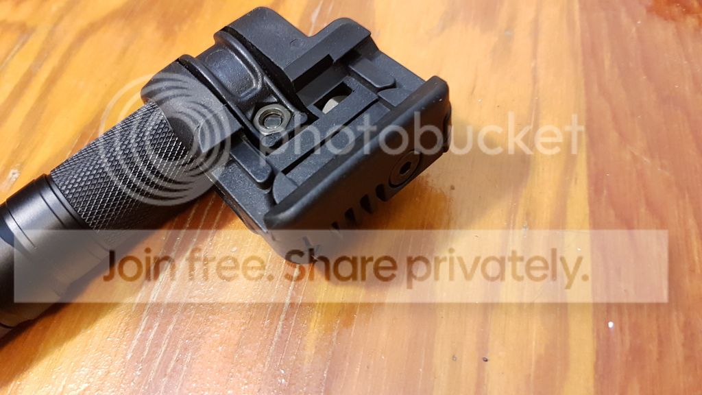 The CAA mount was for 3/4" diameter, whereas the flashlight ended up being a little over 0.80", so I had to use my vise with soft jaws as an impromptu press to get it in. It's not going anywhere; downside is I would maybe have to destroy the mount to get the flashlight back out if I wanted!
