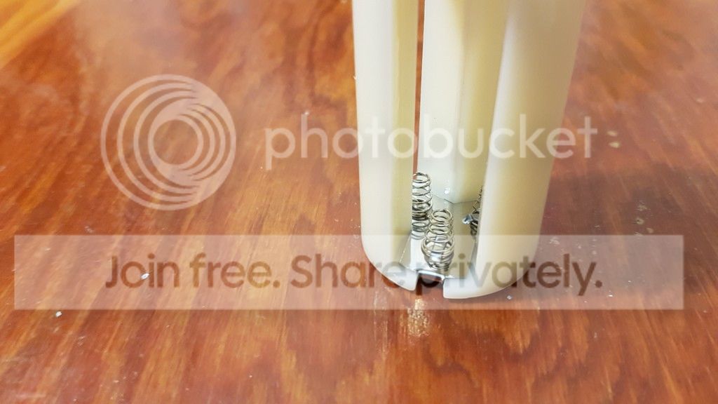 So I decided to improvise a spring for the front. I found some nice springs in an AA to D shell I don't use, and twisted them out.