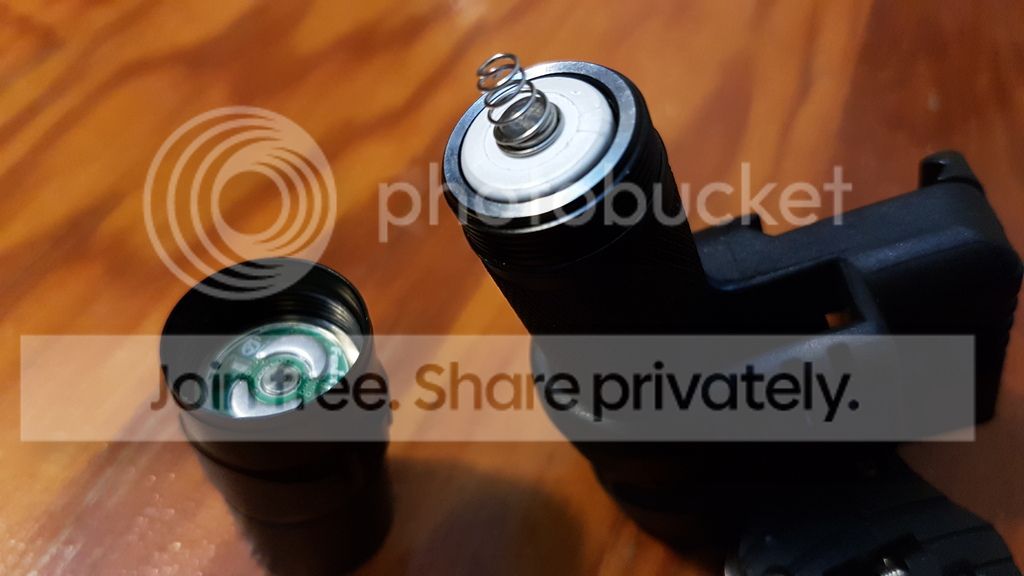 One thing I've read about is the concern over whether the backwards recoil force, which brings the front of the flashlight into the inertia of the battery, will damage the flashlight. Especially for lights that may not have been designed to resist it. A spring at the front would be nice, but unfortunately it only has a spring at the back for the negative terminal of the battery.