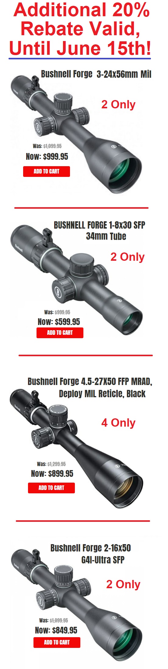 We have been sorting through inventory this week and have identified a few items that are overstocked. Items of limited supply will be posted.