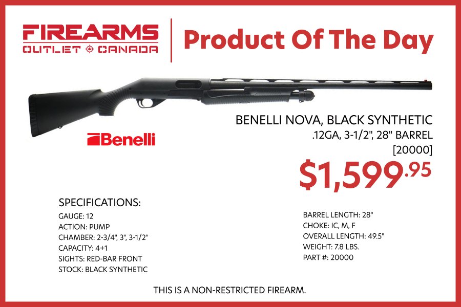 Firearms Outlet Canada CGN frequent flyer Business Member Rating - 100% 27 0 0 Location Ajax, ON Oct 11, 2024 #1 https://firearmsoutletcanada.com/benelli-nova-black-synthetic-12ga-3-1-2-28-barrel-20000/